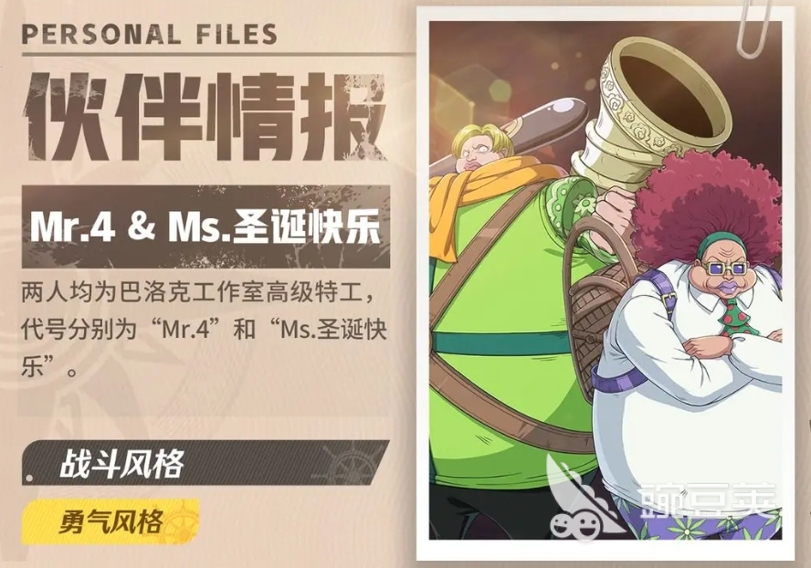 Ms.圣诞快乐与她的搭档Mr.4是一对令人难忘的组合,贝普在游戏中就是Ms.圣诞快乐,虽然看起来是高大且略显笨拙的形象出现,在战斗中却展现出惊人的速度与力量,航海王壮志雄心Ms圣诞快乐怎么玩其实大家也可以从多方面来查看,这个角色的使用上面有很多技巧是一边实战一边掌握的。