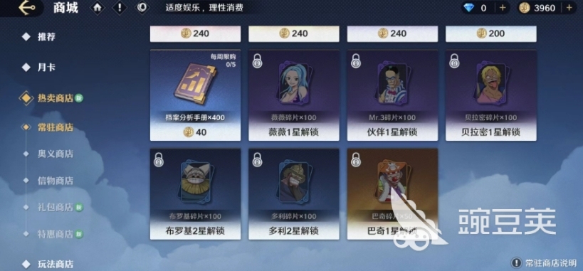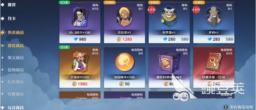 航海王壮志雄心商店系统介绍就为大家介绍到这里啦,虽然商店里面有的东西贵,但是不乏性价比高的东西,希望后期游戏更新后玩家们可以更加轻松地获取心仪的角色,而不必再为碎片的收集而烦恼哦。