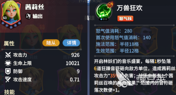 茜莉丝:可以召唤橡树果,起到协助攻击的作用,在战场的过程中,每一次召唤橡木果,那么都可以获得一次加成。还有一个共生契约的套装,可以充分的去发挥每一个召唤物的作用,可以带来更好的续航效果。