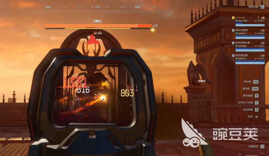 第一个点位看血槽,只要在、博士的血槽剩下快要到第三层的时候,z博士就会直接防毒,大家这时直接往四个角落中躲避一下就行了,第二个点位就是血量到2层时,这里的石像会发射出及激光,带啊只要对着z博士的头猛打就行了,第三个点位和第四个点位也是通关关注血条就能发现,大家无限刷复合弓的时候,只要按照上面的方法不停的去刷就行了。