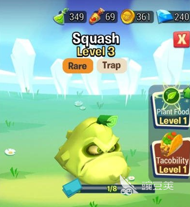窝瓜具体的属性也是很不错的,如果是三级稀有品质,那生命就达到了507点,并且额外还会有152点。虽然说通常生命值并不是很高,但这一点血量就可以有效抵抗僵尸的轻攻击。攻击的伤害还是比较夸张的,基础就可以达到3.04k额外还可以增加913点,这伤害在面对普通的僵尸时也是没有任何压力的。就算是一些比较皮实的精英僵尸,照样也可以直接砸掉大半管血,只是冷却的时间要25秒,所以一定要注意,不要等到冷却时僵尸冲了过来。