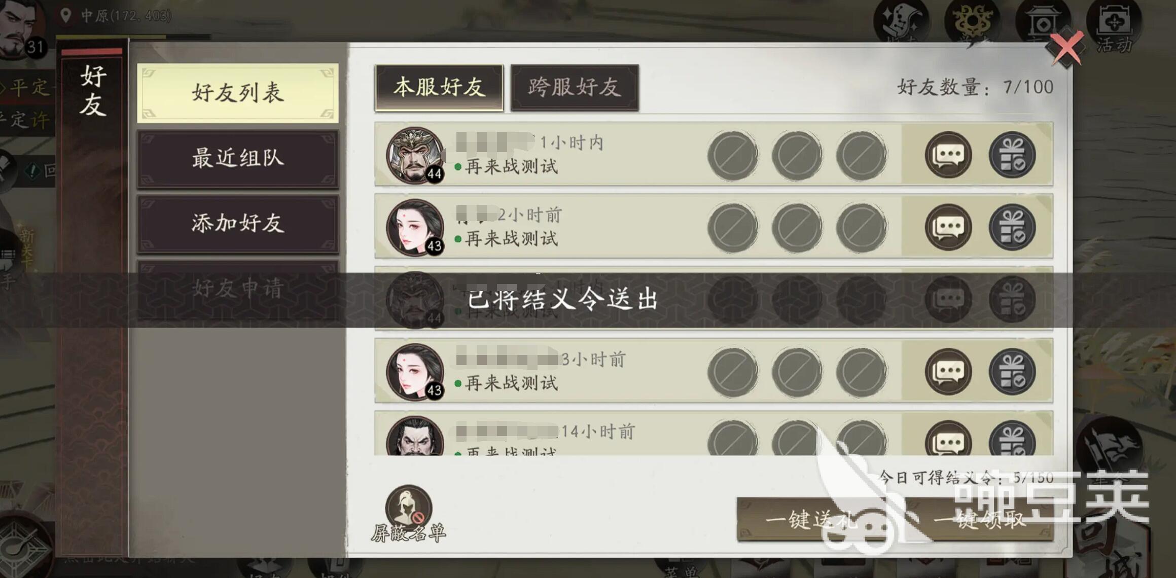资源获取自然也会影响大家的抽卡,新手第一时间先去加好友,20好友,一定要活跃好友,每周能换10连抽,签到7天送的荀彧比抽的奶妈还好用。军务任务里再来战奖励一定要拿,送貂蝉和10张抽卡券。氪金就小月卡最值,30每天算下来大概是1.4抽,168那个战令对于新手来说就不推荐了,中后期可以再考虑,前期用处不大。