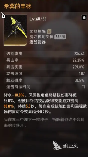那从实力这一方面来看,也可以对比一下辉珀刃,这一个武器获取真的是一点门槛都没有,新手在走完流程之后就可以获取。后期如果觉得不够用,也可以到卡池里面抽卡获取。对于玩家而言,很适合用来开荒,在暴击的时候就可以有机会提升神智。对于一开始比较缺能量释放技能的新手来说,这就如同是救命稻草,而且这武器一点都不会挑人,不管是哪一个角色都可以用来过渡,真的还是很舒服的。