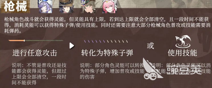 游戏当中的枪械类武器,有一个核心机制就是游戏当中的弹药数值,以及灵能上面的循环效果,大家可以看到在弹药系统下面有一个固定的弹药限制数值,这是一定要注意的,也就是枪械角色一般在拥有固定弹药数量之后,使用普攻以及部分的技能的时候,是需要消耗之前累计的弹药才能成功带来输出的,且消耗的弹药数值越多,带来的输出能力就越强,这里还有一个特殊弹药强化的机制,也比较独特,大家消耗特殊弹药的话,可以提升自己各个技能的数值,在上面不管是超解技还是基础技能,都有一定的提升效果。