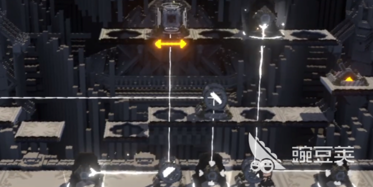 第7个关卡相对会比较复杂,玩家跳上一个黄色机关上面的平台翻转镜面之后就可以让光线往下照,然后重新的调整黄色的机关可以直接把对应的平台都往右面推。最后就会重新回到第4个交互点,也就意味着大功告成啦。