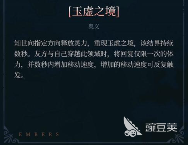 在她的大招上面叫做玉虚之境,使用这个大招的时候是需要灵力的,那么在消耗了灵力之后,就会出现一个境界,这个结界持续时间很长,主要是队友和知世自己进入这个领域里面的话,直接就会触发恢复的效果,并且再一次体力数值恢复,并且在后续几秒之内,她的移速也会得到一定的增强,且这个移动加速是可以反复触发的。