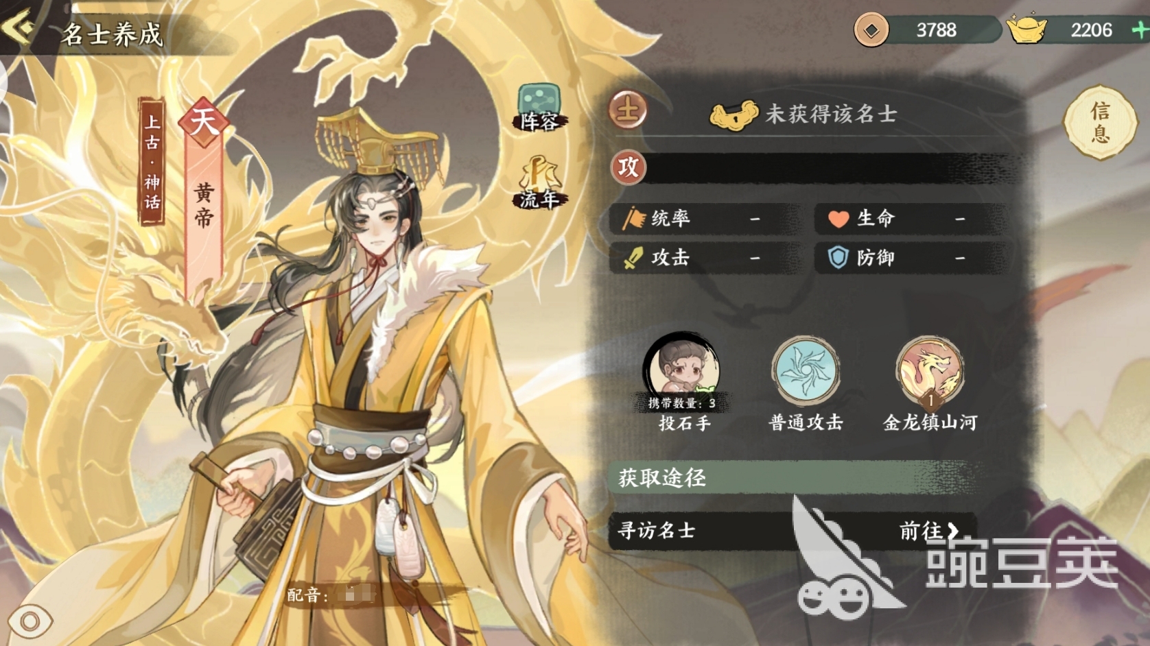 黄帝作为地属性阵容中的核心,自然也延续了地属性名士防高的特性,使用技能时更是可召唤金龙来冲击敌人,同时也为己方加上护盾,让地属性阵容的整体肉度能再上升一个档次。