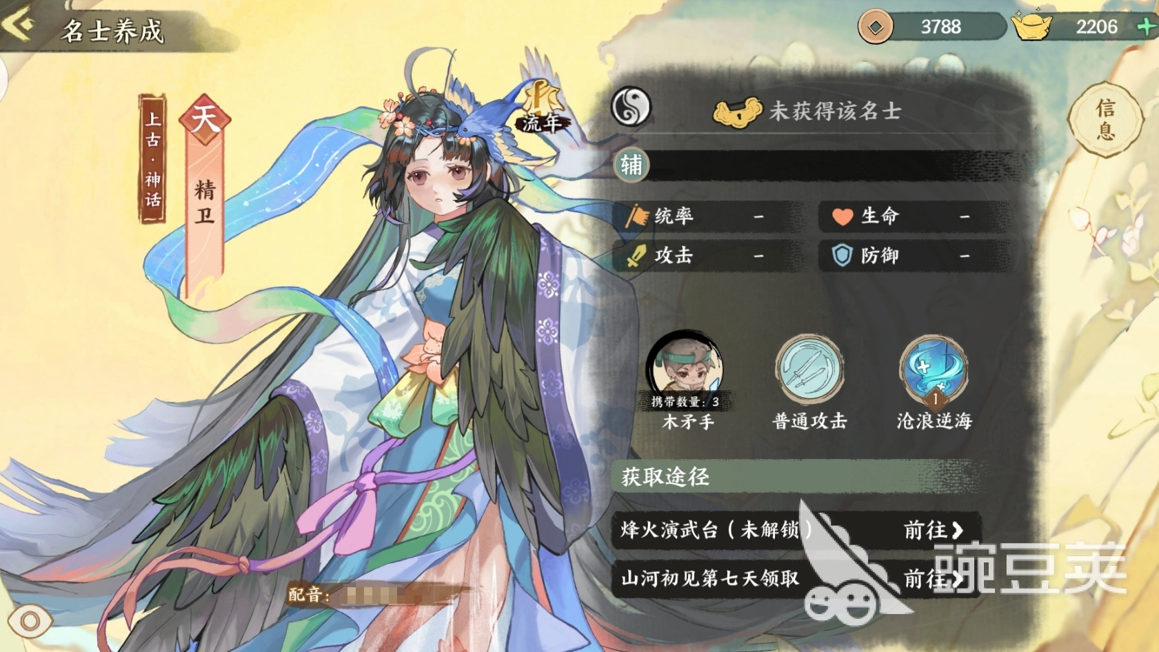 完成开服后的七天任何就能直接拿到的天级名士,自身为两仪属性,所以可进任何队伍充当治疗辅助。并且她在释放技能时,可为队友提供持续6秒的恢复效果,能有效地保证队伍的血线健康。