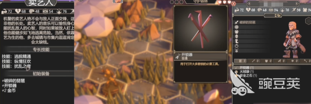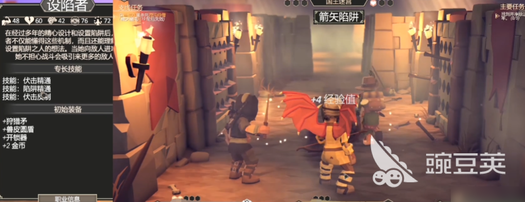 接下来就是设陷者,这个职业作为一个辅助职业,强度不会特别的高,但是本身的机动性还是很不错的,所以敏捷度还是很不错的,可以很好的避开敌人的攻击,在使用这个职业的时候可以增加一定的防御效果,那么主要是机动性也很不错,在前面地图当中也有许多的陷阱,需要大家来避开,可以利用这个职业来直接进行拆解,同时它的主要输出方式还可以进行反击,分击的伤害也可以算在输出当中,还有一个卖艺人。