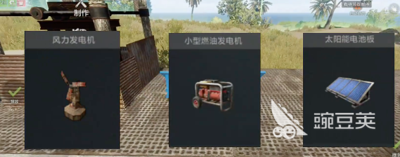 一开始也会以为电路系统很复杂,后面就会发现也就是4种元件,第1个就是发电设备。风电发力机就是主力也是游戏中比较强悍的发电设备。但有一个关键点放得越高,那意味着发电效率也就越高。如果放在安全楼的1楼半天也发不了电,可放到屋顶的架子上,电量就会直接的翻倍。太阳板和现实生活中一样,主要是靠光发电,白天效率很不错,可是进入到晚上就没有什么作用,还是要搭配其他的发电设备。小型燃油发电机是主要的应急之选,只要有油就可以一直转。