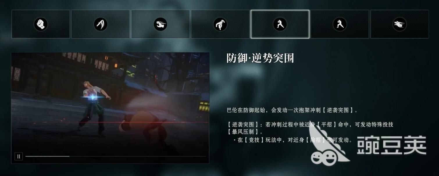防御逆势突围按防御键时巴伦会先向前小跳冲刺,这时候被敌人平A打中,就触发暴风压制,抓住敌人领口旋转摔击,伤害高还能接追击。但这个防御反击有12秒冷却,PVP里不要被别人骗技能,技能空掉很容易被人绕后打背,一般都是等别人最后一段普攻在放或者远距离技能更有把握。
