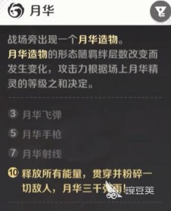 当玩家获取了月华的羁绊以后,屏幕的左上角就会出现一个小小的标志,这里会显示一个月华造物,十月华的羁绊非常强大,系统对于他的描述为,释放所有能量,贯穿并粉碎一切敌人。这也是月华羁绊的最终形态。可是在游戏开始之初,小伙伴们是无法叠加到月华羁绊十的。