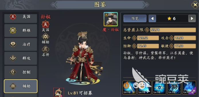 最后是辅助位置,主要是负责治疗,还有增加buff,那比较好用的就是孙权,还有郭嘉。郭嘉的辅助还是很有针对性的,大招不仅可以回血,还可以百分百消除队友身上的中毒或者是沉默效果,延长队友身上的增益状态,时间可以让buff的效果更加持久。孙权则主要侧重于群体辅助,具备一个群体治疗的能力,可以把自己身上的增益状态全部都复制给队友,而自己身上的buff也就会变得越来越多,队友就可以拿到更多的加成。