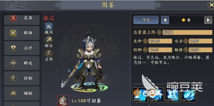 从输出位置上来看,也有多个可以挑选的角色,例如张辽,吕布,关羽,还有董卓。张辽擅长的是单体爆发,在针对单个敌人时确实打得很疼,而且还可以根据自己所造成的伤害比例给自己回血。这就相当于有了一个续航的辅助优势,另外还会具备额外暴击率打出去还可以惊吓目标,直接限制对方的输出。关羽就会比较适合放在后排,可以给自己开一个武圣状态,在开了之后暴击率就会升高,而且还会提升吸血的效果,直接无视对方的反制。