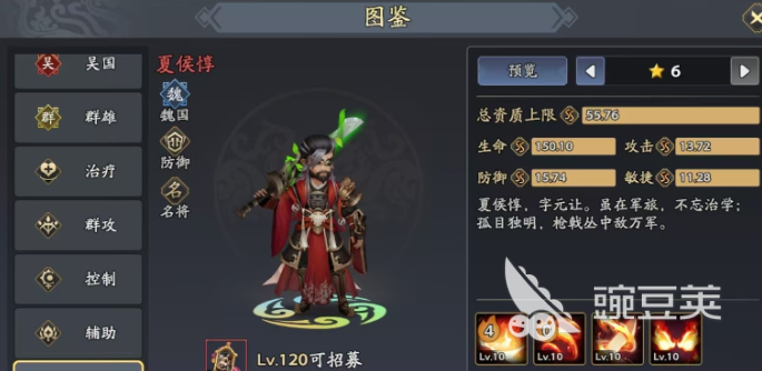 接着来看一下防御位置,能够负责保护队友,抵抗伤害的有夏侯淳还有许褚。夏侯淳主要是靠被动,每一次受到伤害时,都会有机会叠加刚烈层数。叠的越多,那自己的攻击力还有伤害减免也就越高,战斗拖得越久,那自然就可以更加能打。后期确实是一个又肉又输出的存在。许褚虽然是防御定位,但是输出并不弱,必杀技能就是全体攻击,造成的伤害并不低,关键是还有几率直接驱散对面身上的增益状态,就相当于直接削弱对方的战斗力,可以帮助队伍去减轻压力。