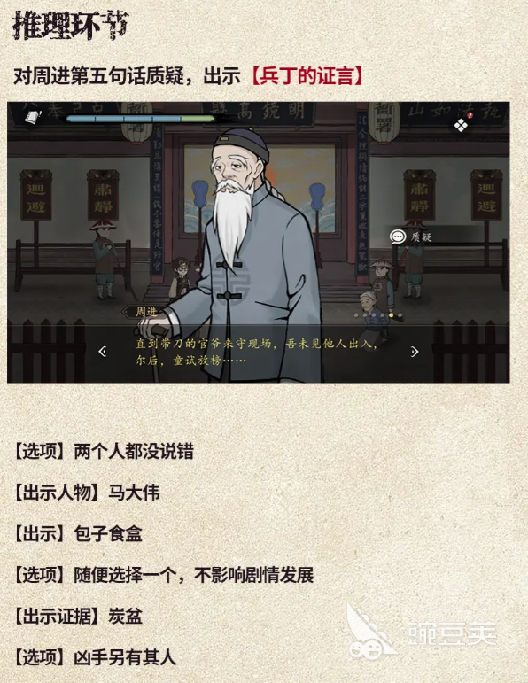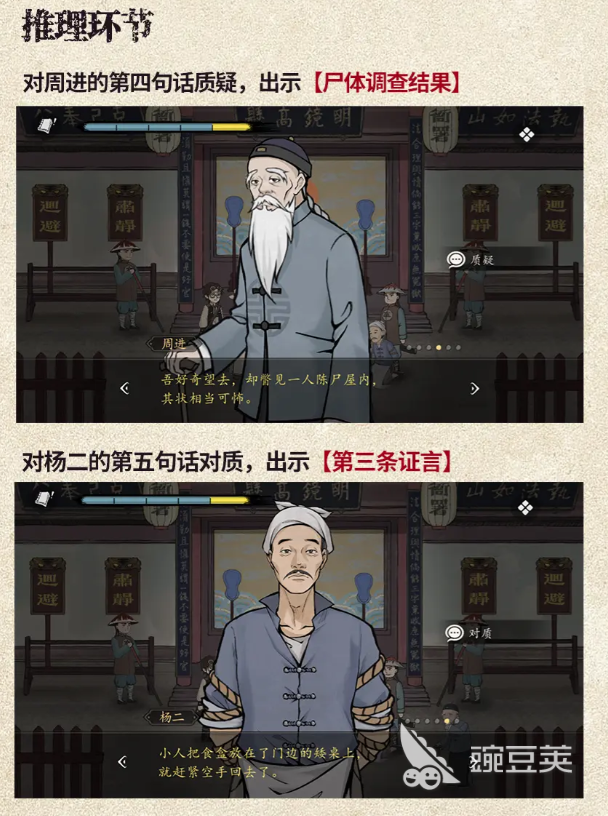 到了首次庭审,核心就是挑证人说的话里的漏洞,老童生说他瞥见屋里有个人死了,但他描述的尸体情况,跟之前查的尸体调查结果根本对不上,这时候就赶紧把尸体调查结果拿出来,直接指出来他说的不对让他没法圆,杨二说把食盒放门口矮桌上就走了,这时候别光听他说,得把之前收集的其他证言拿出来比对,这一步一定要多琢磨,不能只盯着一个人的话,得把几个人的说法放一起比,才能找出不对劲的地方。