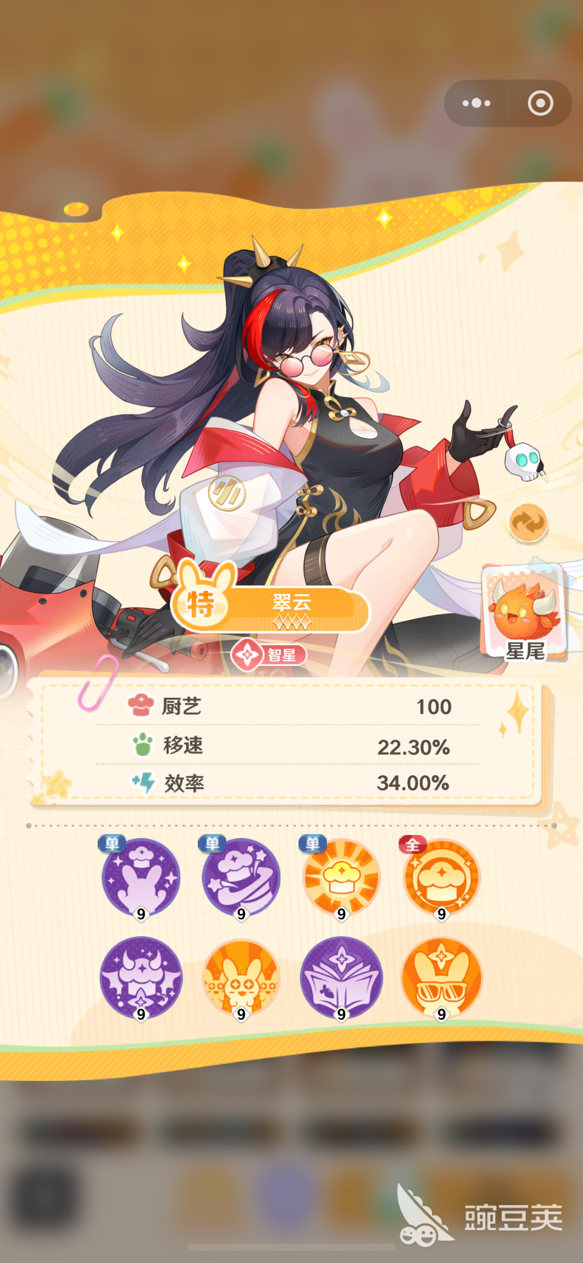 只要店铺的顾客入座率达到80%时,它会以400%的移动速度完成更多的订单,用心去服务好每一个顾客,让他们吃完饭都能有一个美好的心情。顾客越是高朋满座,他的工作积极性就会越高,完全不用担心客流量过大的问题。只要是翠云接手的店铺时间,所有店铺中的店员厨艺都会增加150,烹饪出顾客所需要的更多美味食品,这也是一个全体性的厨艺技能,为整个小店带来各方面的收益和加成。派遣翠云前往超级厨王秀活动中因为拥有自带的智星特质店员标识,还能有机会让厨艺增加27%,此活动可以优先参与。加入到协会中完成协会订单也是一个不错的成长策略在订单完成之后能够获得食谱秘料6.5%,增加稀有美食的制作几率和相关订单完成效率。