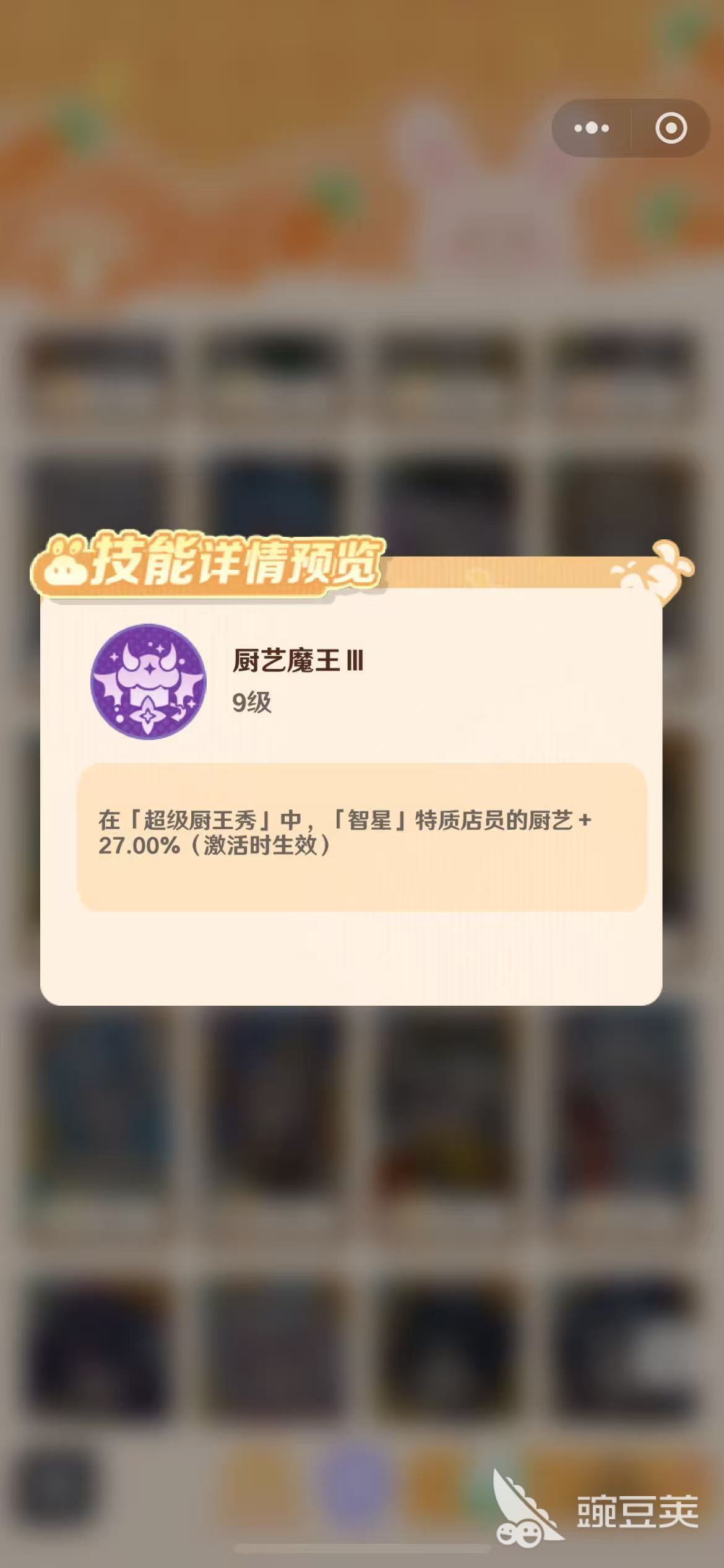 厨艺方面是100分,虽然烹饪的技巧不是一流的,但是店铺经营时的效率却能够达到34%。客流量非常多的时候,能够提升22.3%的移动速度,就算同时出现多个订单时,也能够很快的操作相应的机器完成。