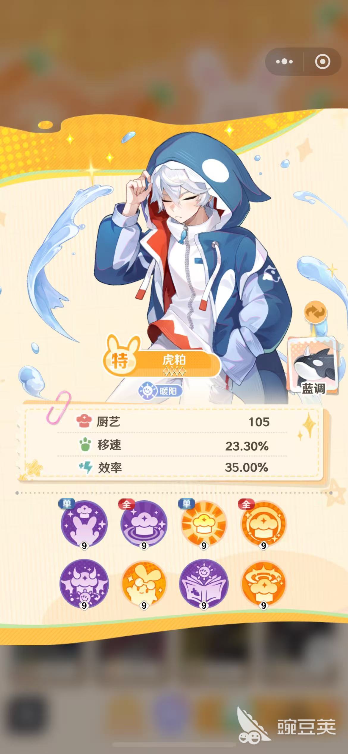 也因为它是拥有暖阳特质的优秀店员,待人非常亲和温柔,顾客们都会非常喜欢这样的服务员。相同特质的店员技能,对他所有的属性都能够提供加成效果。使用与它特质相同的厨具时,也会享受到额外的属性加成。