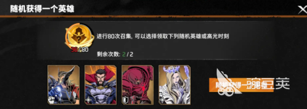 卡池的机制其实会有所区别,如果是选择普通奖池,那就有一个80抽保底的机制。在抽完80次之后就可以获得随机的三星角色卡,又或者是金色高光时刻卡。在40抽之后就能有机会获得稀有卡牌。并不需要担心一直抽不到好东西,关键的是普通的奖池还会有两次保底的机会,可以拿到三星角色或者是金卡。对新手来说是比较友好的,一开始靠普通奖池就可以获得很多的英雄。活动奖池更有针对性,例如在这里就可以拿到钢铁侠又或者是雷神。保底的次数要比普通奖池少了一些,只有一次80抽保底三星角色的优势。