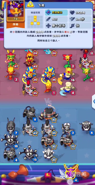 由于飞龙隶属于灵异魔法系角色,所以在搭配方面,玩家可以使用豌豆花,亦或是祭司等角色,来扩散飞龙的灵异魔法效果,使得三个单位的敌方目标判定,能够扩散成为十个目标以上。