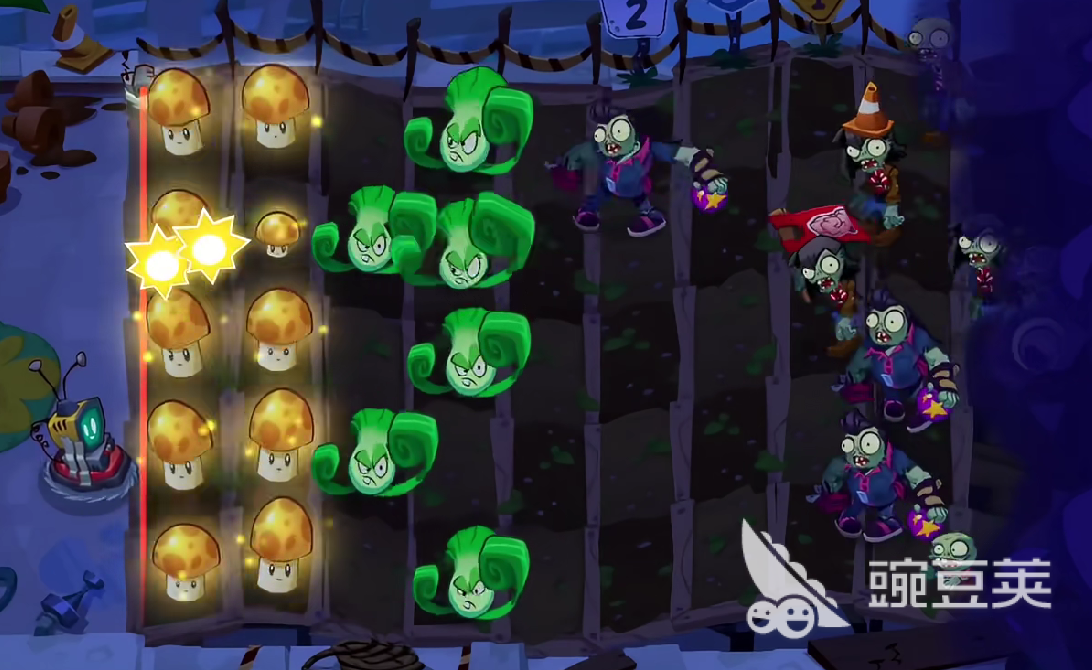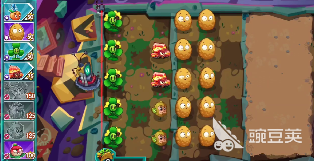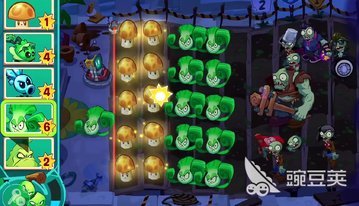随后,首次的防御可以使用弹簧豆,亦或是使用坚果墙,让博士的机制刷新速度变慢,同时预留五十到一百阳光,用于防止滚筒僵尸突袭。