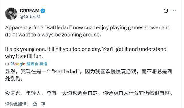 此举立刻引发了新一代玩家(“Zoomers”)的不满——他们普遍偏好《使命召唤》等更强调机动性的射击游戏。你大概能想象争论的走向。