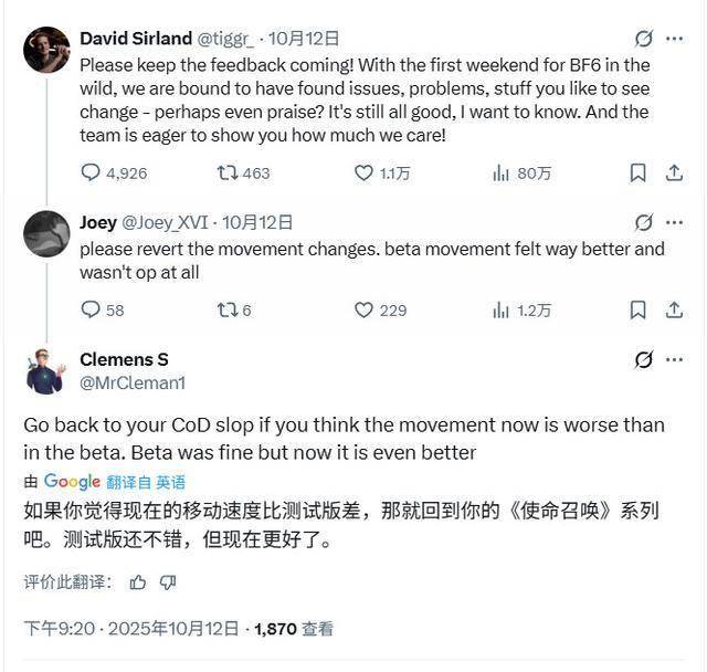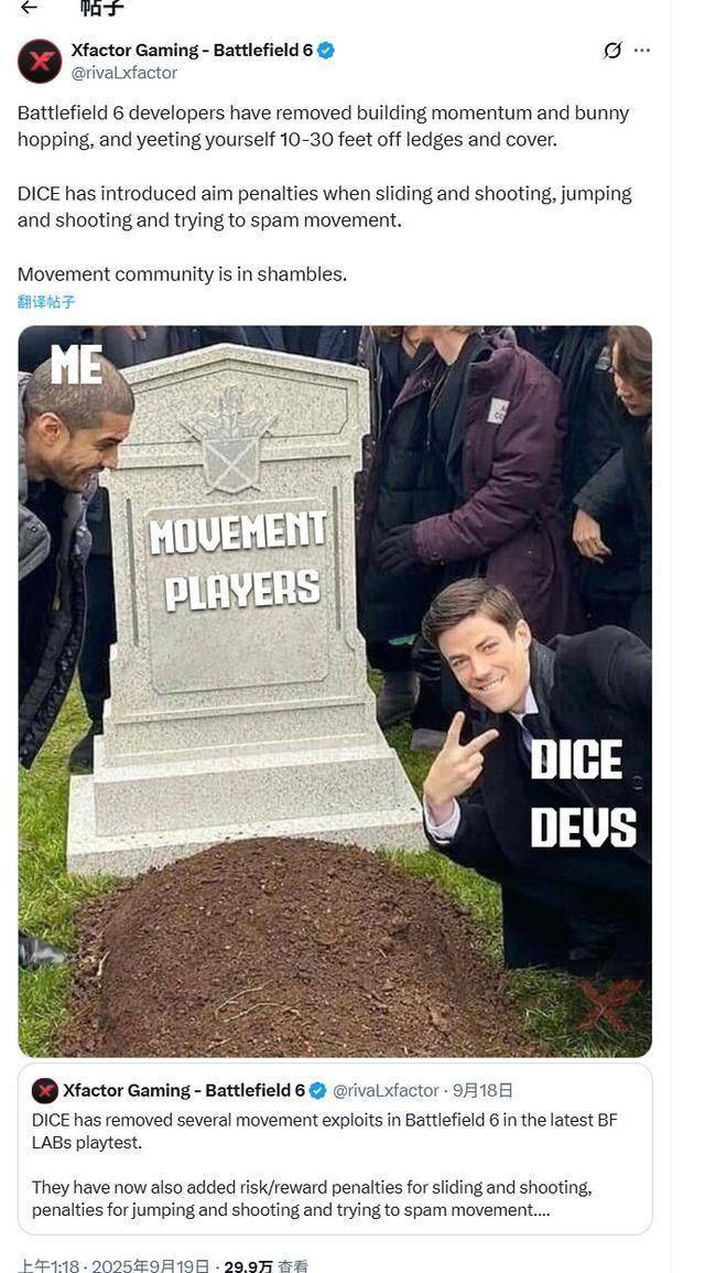 DICE首席游戏设计师Florian Le Bihan仍活跃于社交媒体,他持续倾听玩家意见、权衡《战地6》的未来方向。他最近的评论可能让两方玩家都略感失望——他暗示将进行“小幅调整”,但不会影响基础移动速度。