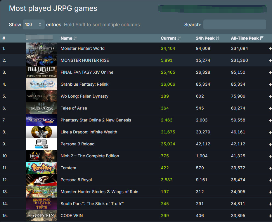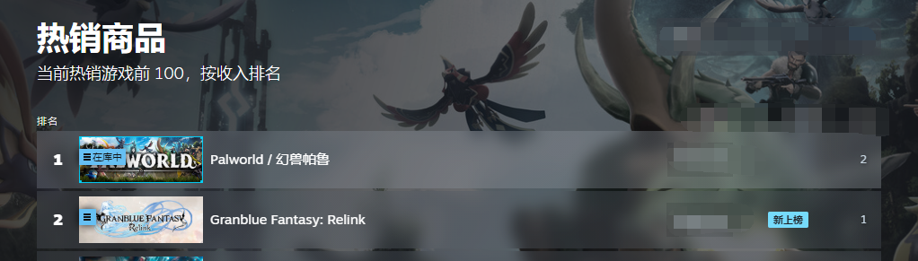 这一亮眼的成绩使得《碧蓝幻想:Relink》在Steam上的JPRG游戏排名中迅速攀升,目前已跻身第四位,仅次于《怪物猎人:世界》、《怪物猎人:崛起》和《最终幻想14》这三款大作。而此前备受关注的FromSoftware作品《卧龙:苍天陨落》则被其超越。