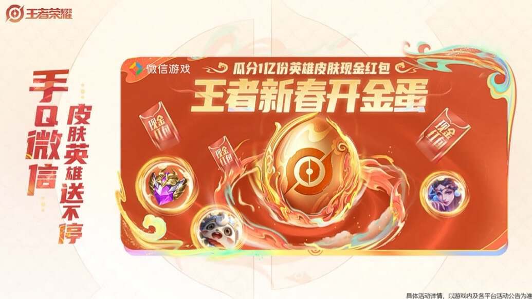 另外,王者荣耀V区的摇心愿活动在近期也要上架了,V区的活动名为王者新春开金蛋活动,这个活动不同于QQ区的皮肤卡活动,玩家在近期只要每日登录游戏,就可以获得抽奖机会,可以抽到荣耀水晶、永久皮肤等。并且值得一提的就是玩家在除夕当天登录,抽取皮肤的概率会翻倍哦。