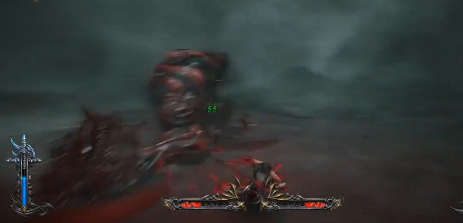 污秽之血本体躲藏在血肉傀儡里,周遭又是污秽血池,所以德古拉雾化这类躲避的能力没法派上用场,唯一可用的就是开场夺取的二段跳(恶魔之翼),但对于血肉傀儡不能贸然进攻,他会像《空洞骑士》里的苦痛荆棘一样“炸开”,为此就需要将其控住后再进行输出,打了这么多BOSS马上就能想到,虚空剑与弹反;虚空剑的话冷冻刀锋是个好技能,弹反方面的话血肉傀儡的破绽在其“拜年锤法”,前3下是不可防御,最后一下蓄力的技能弹反了。