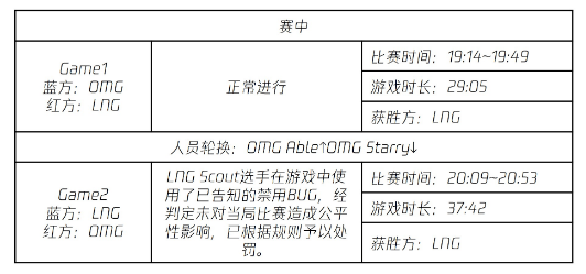 日前LPL赛事官方就公布了新一期的报告内容,报告显示LNG对阵OMG的第二局比赛,Scout在游戏内使用了已告知禁用的游戏BUG,经判定未对当局比赛造成公平性影响,已根据规则予以处罚。