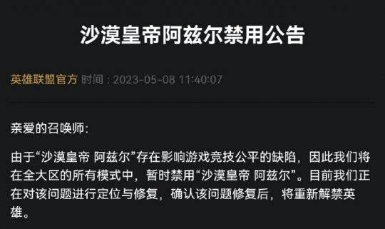 或许拳头设计师应该考虑在修复BUG问题前,暂时禁用沙皇的选择。