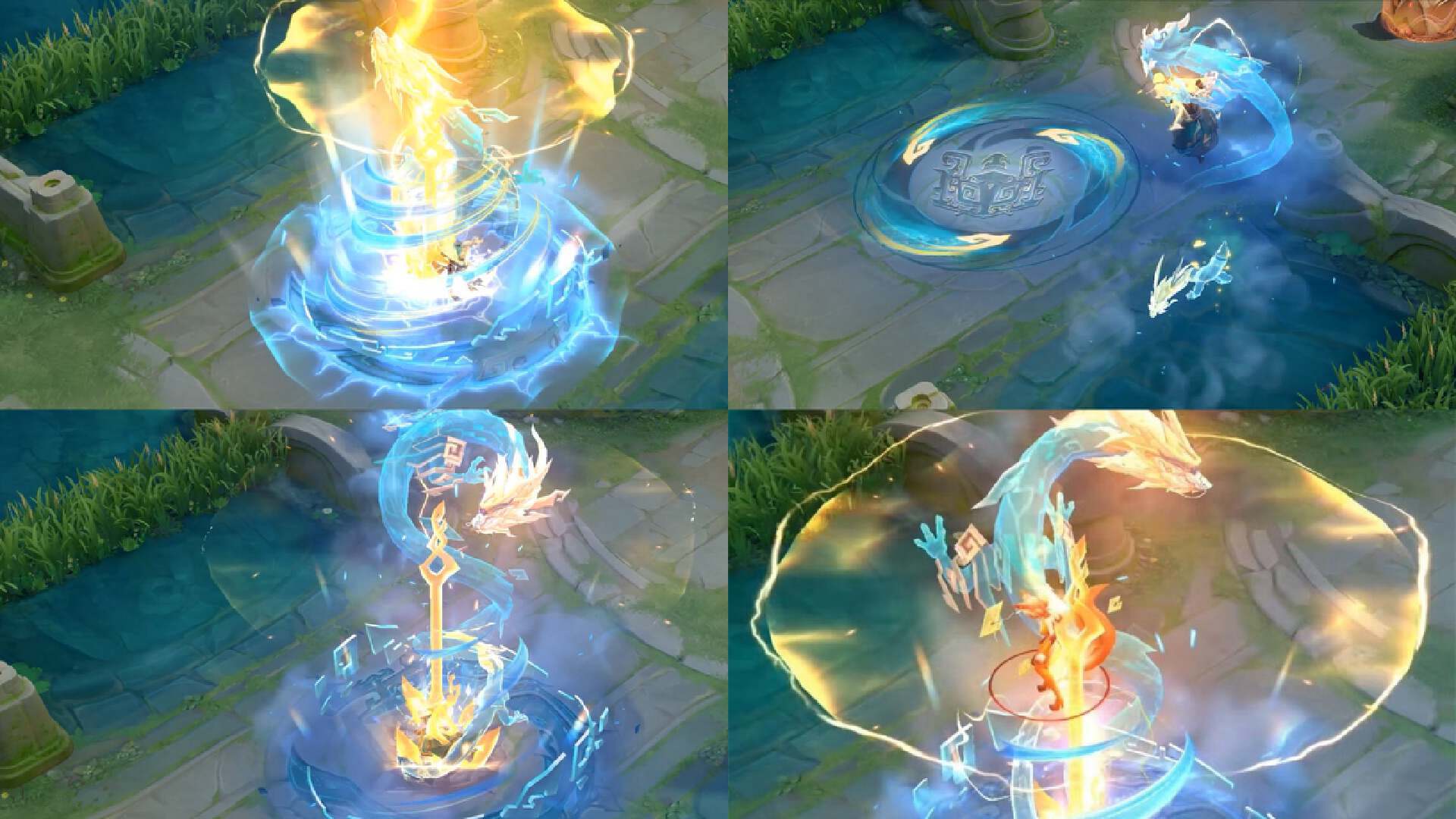 在第3个档位(飞龙在天)的时候,赵云的身边会时不时出现一条神龙围绕,并且这个特效和其他技能特效结合的时候,看上去有一种更加高级的感觉。
