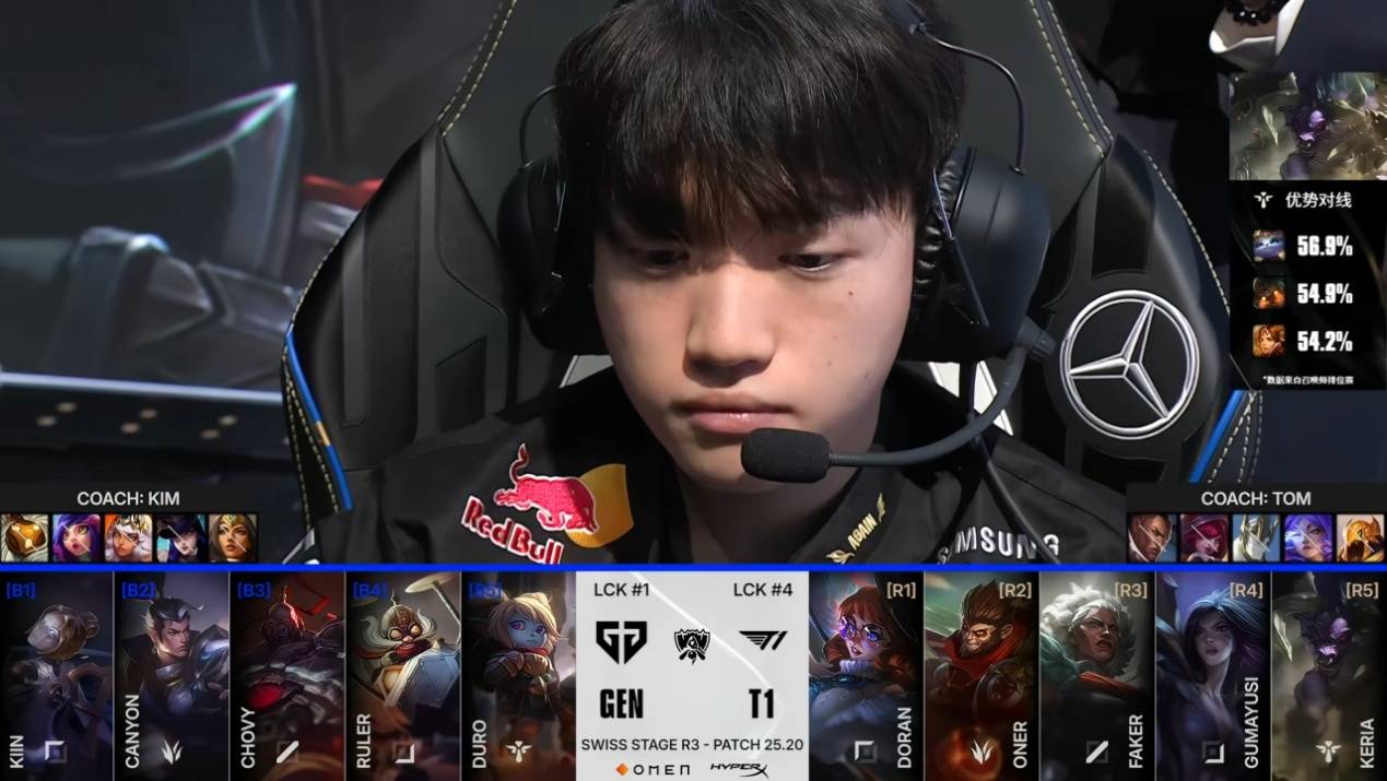 S15瑞士轮比赛的韩国队内战在今天上演,结果在T1与GEN的再度对决中,GEN几乎不费吹灰之力就轻松击败T1,将T1送入淘汰轮。