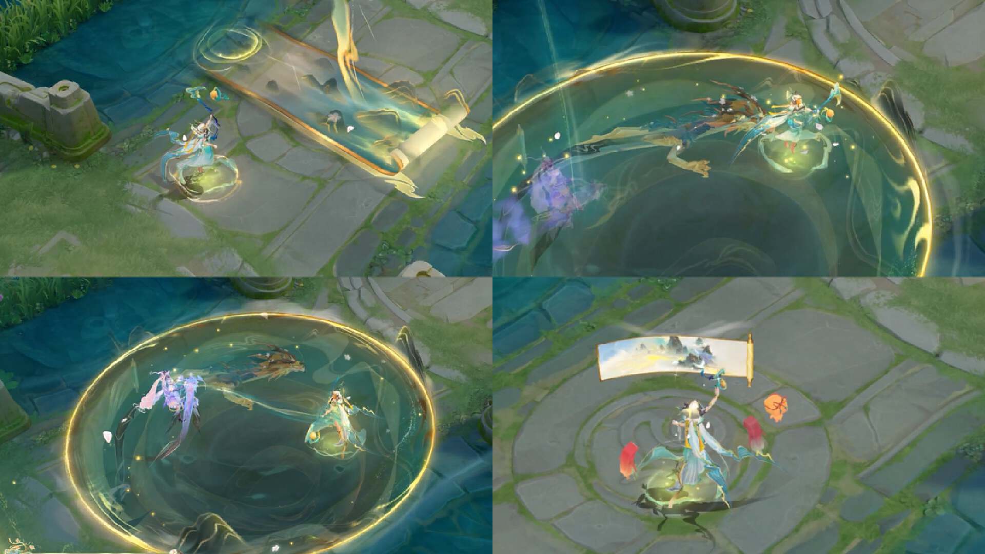 三技能的特效比较简单,释放之后就是展开山水画卷,整体的效果就是慢慢的展开一幅画的感觉,并没有像一技能那样展示出的神龙特效。