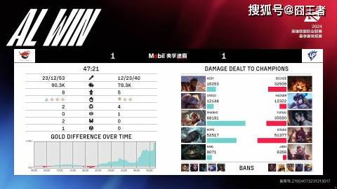 结果第二局比赛,AL和UP两队,打出一局冗长且无趣的膀胱局。两队在48分钟的比赛里面,打出了7条小龙,2条大龙,1条远古龙的庞大资源。结果双方在前25分钟“和平发育”,随后双方互有击杀,但都没能拿到大龙,双方僵持到第七条小龙。最终47分21秒,AL龙魂团中,打出2换5好团后拿下龙魂,随后携远古龙buff,0换4完美团,一波扳平比分。