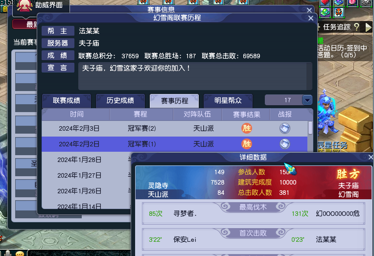 由于第17届帮派联赛决赛举行时间为农历新年的一周,所以刚刚拿下年度亚军的【幻雪阁】对这次决赛非常重视。经过两天的对决,【幻雪阁】靠着出色的硬实力和极强的执行力,以2:0的强势姿态战胜【天山派】,成功拿下“新年第一冠”。随着顶端帮派联赛格局变动,我们有理由相信,【幻雪阁】只要能保持这样的竞争力,未来会变的更好!