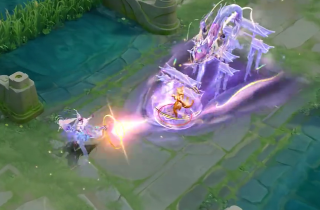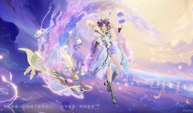 二技能发射星轨仪,有神龙出现。大招是神龙追逐星辰而去,后面出现了三道门,龙在上面盘旋,特效太过炸裂。大小姐的好皮肤有不少,可始终找不出一款皮肤在特效上压制她的龙年皮肤。如果要给大小姐皮肤打分,你根本找不出皮肤的扣分项,从建模到特效堪称完美,给个100分不过分。
