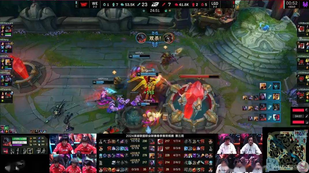 LGD今天和WE打满了3局,最后一盘上单Burdol想对Wayward上演正反手教学。在Wayward第二局永恩没能打赢剑魔之后,第三局Burdol玩永恩去打Wayward的剑魔,结果表现更惨最后也是研发i7成功。WE也是以2-1击败LGD拿到了年前的第三胜。