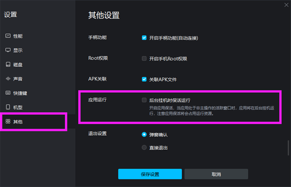 第二步:启动MuMu模拟器12,点击右上角的“三个横线”开启模拟器【设置中心】,在【其他】选项内,勾选【后台挂机时保活运行】功能。
