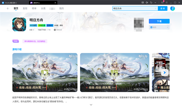 比较推荐用MuMu模拟器12,MuMu模拟器12和MAA小助手连接比较稳定,并且模拟器本身性能比较高,对游戏的适配做的也非常好,不容易出现游戏闪退、卡顿、导致小助手运行错误的情况,且安卓与iOS双端可用,具体的速刷方法如下。