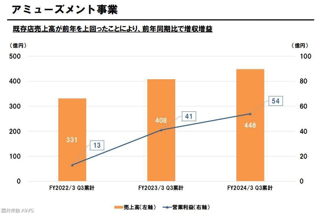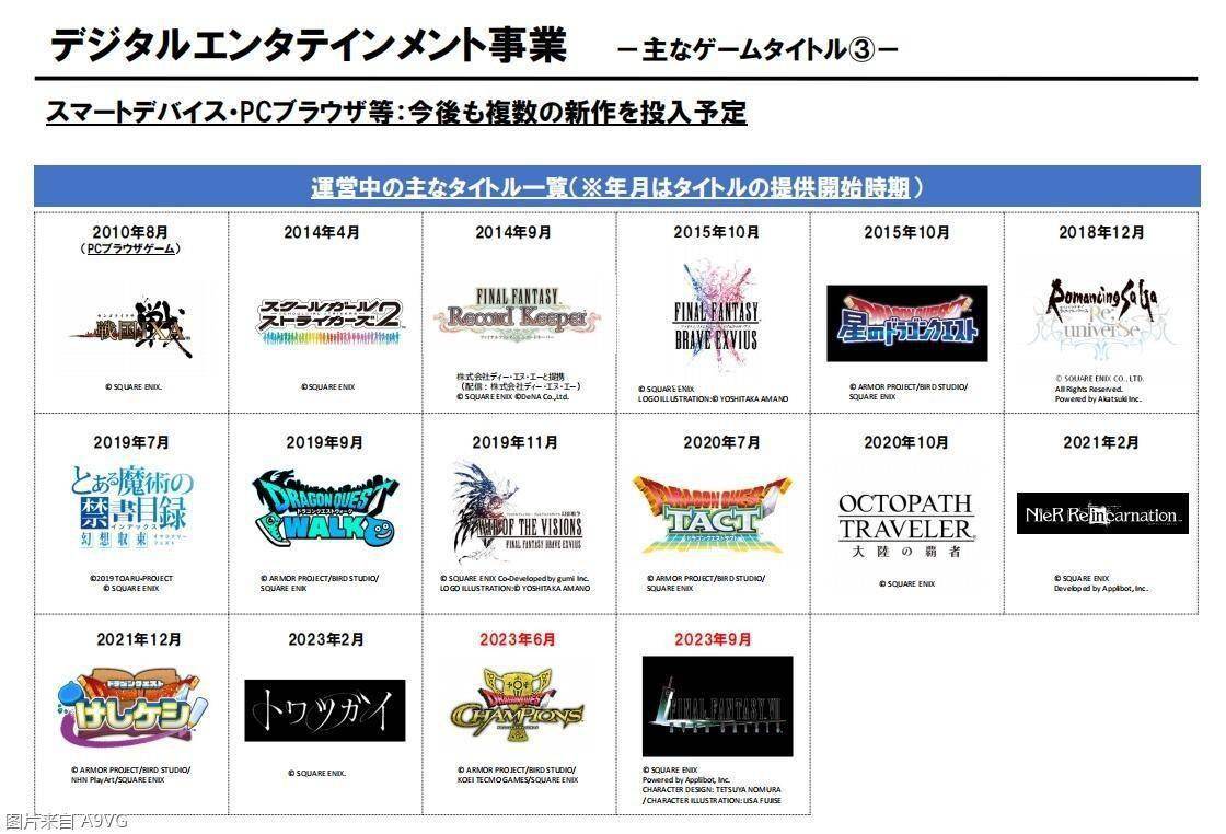 其中以游戏为主的数字娱乐业务具体数字:销售额1796.54亿日元,同比减少2.6%,营业利润307.15亿日元,同比减少20.7%。截至12月底该财年推出《最终幻想16》《最终幻想1-6 像素复刻版》《勇者斗恶龙怪兽篇3 魔族王子与精灵之旅》等新作,为提升销售额做出贡献。