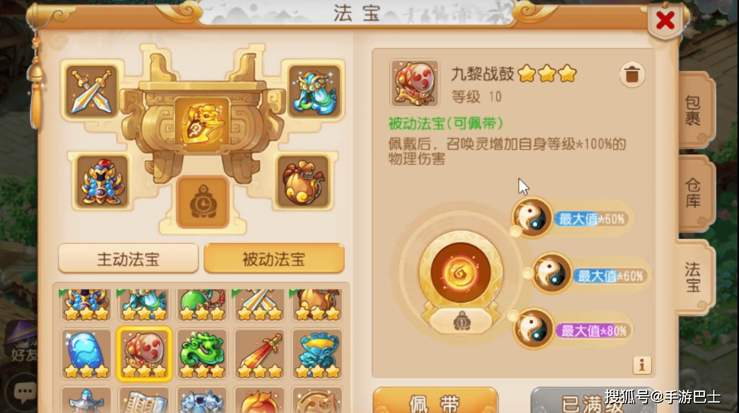 在保证生存和核心治疗后,剩下的法宝格子,就可以根据场景需求选 “增益型” 法宝了: