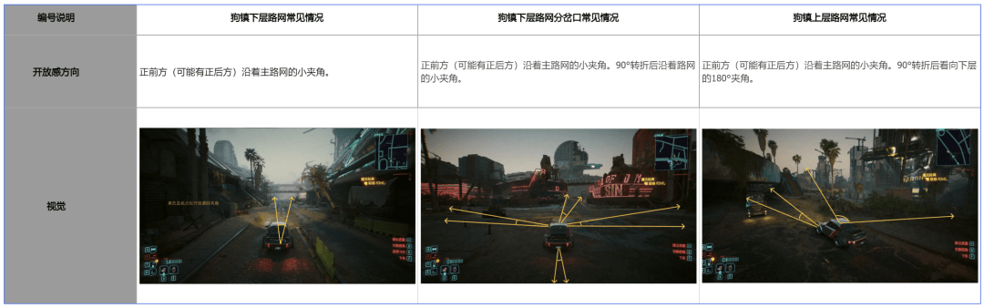 3. 什么是方向性的开放感?为什么要这么做?方向性的开放感:玩家在关卡某位置时,镜头转向某个方向才有开放感,其它方向则没有。原因:布局向流程让步——其它方向在狗镇中需要支持高设计密度。