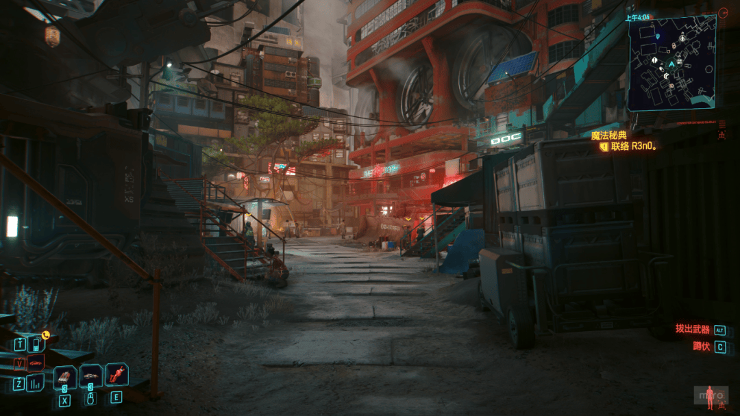 4-营地内部-图片来自2077狗镇截图-从3进入后、场景美术、光照都瞬间改变。