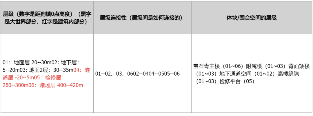 2. 独特的层级高度允许塑造更独特的体验。04--06层级是宝石青地块的特点。04的隧道层提供一种全封闭式的体验。05则提供一种悬空的建筑内部体验——上不见顶,下不见底。06则提供超高层的视野体验,玩家在这可享受极佳的风景。