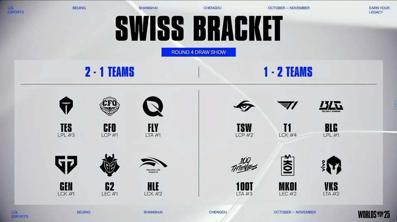 S15全球总决赛在今天是结束了第三轮比赛的所有对决,在两场淘汰轮BO5结束之后,现场进行了第四轮的对阵抽签,产生的对阵将全部为晋级轮或淘汰轮。