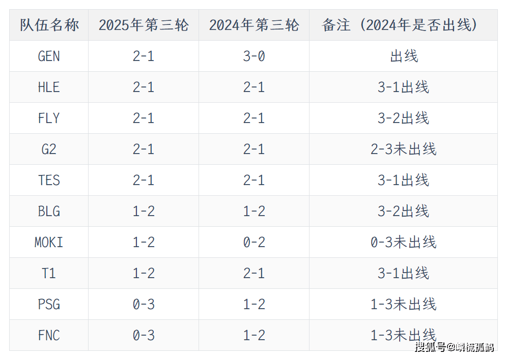 不难发现,今年瑞士轮第三轮结束后,除了GEN,其他2-1队伍的成绩跟去年一模一样,不同的是GEN今年2-1,去年已经3-0美滋滋去八强了。