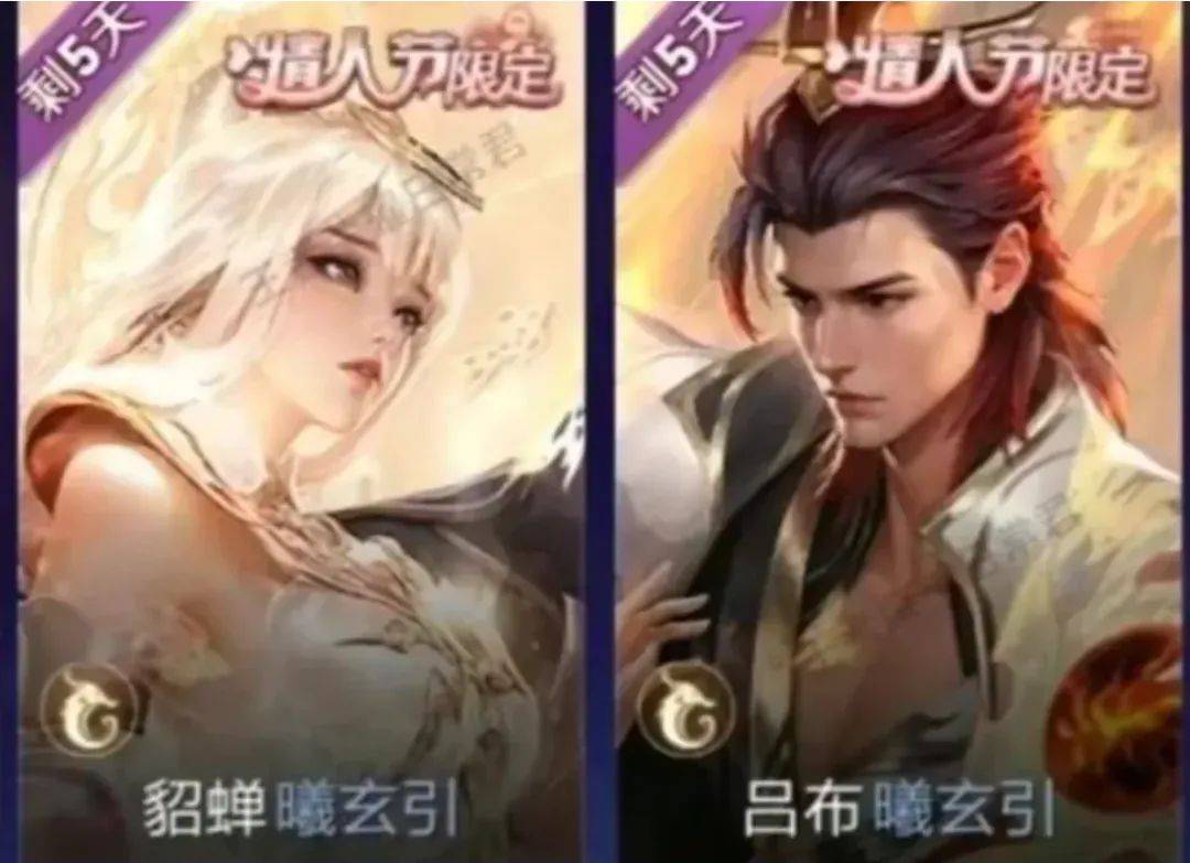 今年的情人节限定皮肤,给到了两位英雄,是吕布和貂蝉。
